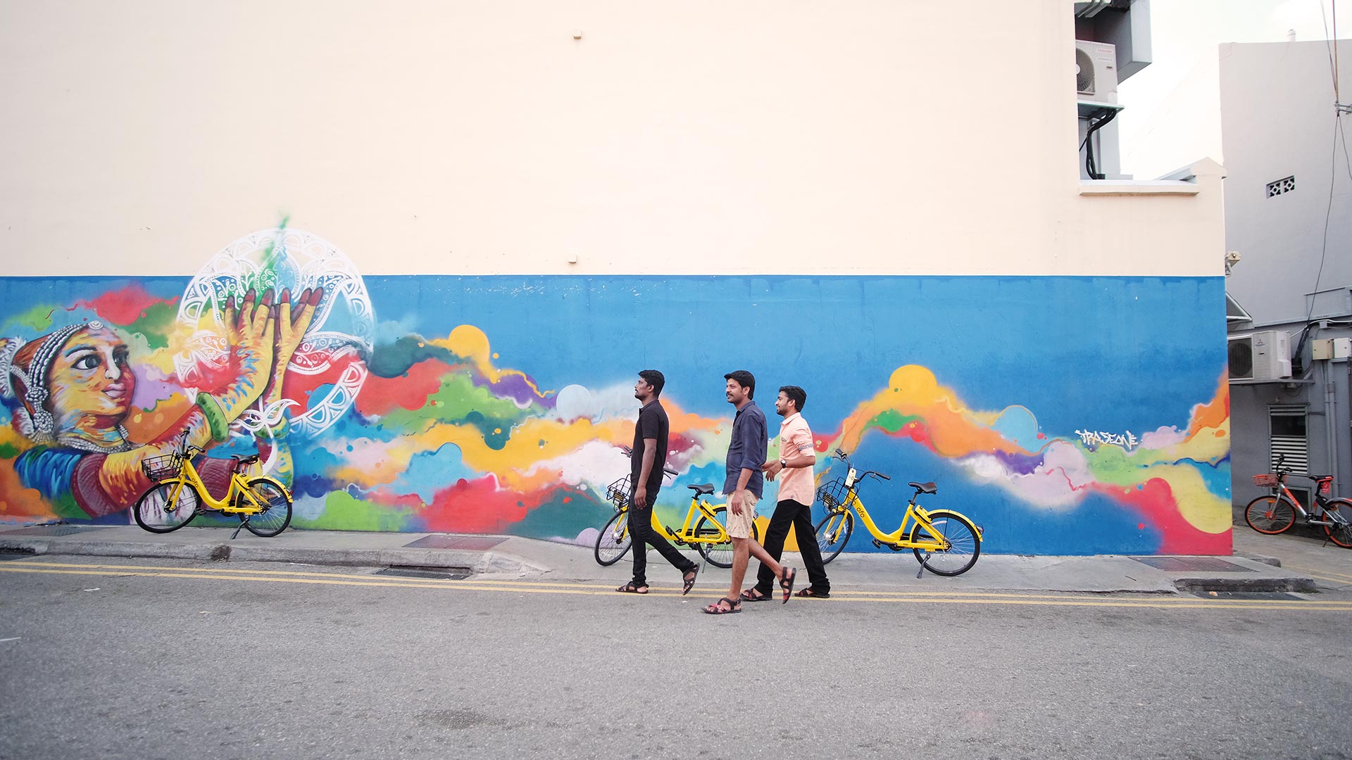 Esoknya, bertema “Play & Explore Like a Local”, kami diajak menelusuri jejak budaya Singapura melalui mural yang tersebar di Little India. Bersama Uncle Albert yang awalnya pendiam, acara jalan kaki tengah hari bolong itu lama-lama menyenangkan juga. Saya jadi tahu, misalnya, tentang asal usul kehadiran orang India di Singapura, yang pada masa itu bermata pencaharian pokok sebagai tukang cuci pakaian atau Dhobi Ghaut (jangan-jangan nama Dobby, peri rumah, dalam Harry Potter diambil dari sini?) yang kini menjadi nama stasiun MRT.